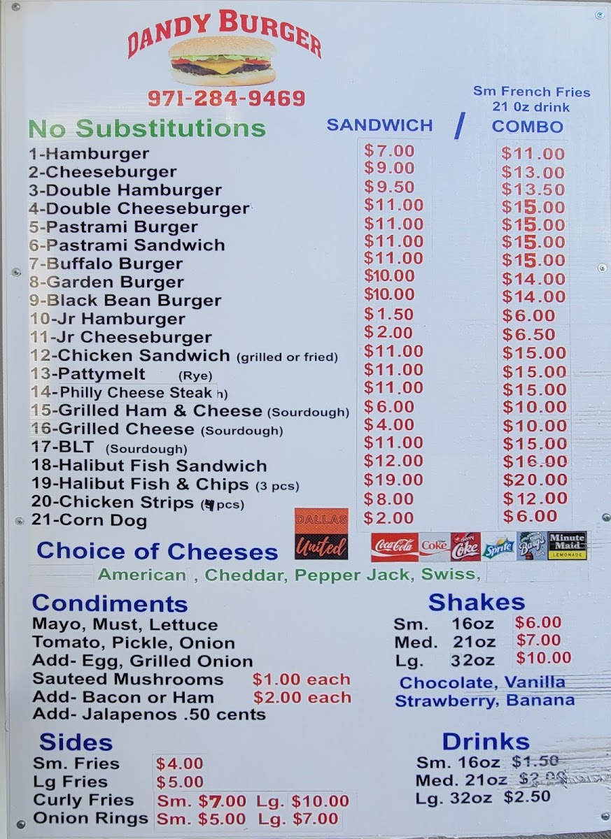 The menu at Dandy Burger reflects a straightforward and welcoming approach to classic American dining. You’ll find a selection of comforting, well-crafted burgers and sandwiches that fit perfectly into casual, everyday meals. Whether it’s a quick lunch or a relaxed dinner, the focus is on familiar flavors and satisfying portions without unnecessary fuss.
